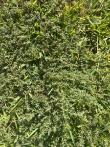 Poa annua is a cool-season grassy weed that typically germinates in fall but becomes highly visible in spring as it produces seed heads.